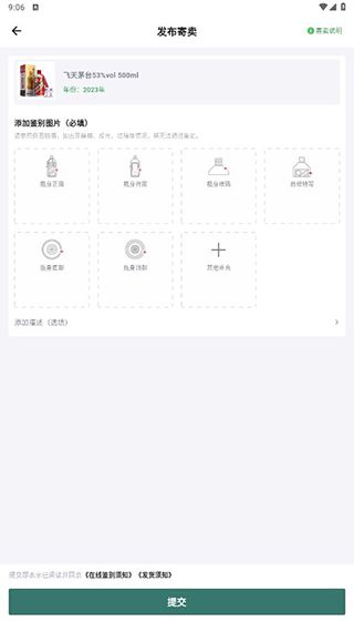 2、提交酒水信息(照片、年份),提供的照片信息请参照例图拍摄;