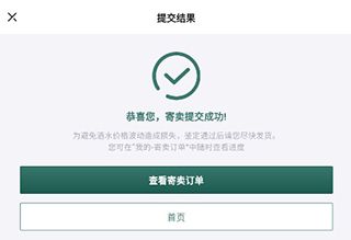 6、等待一会即可提交成功,可以点击查看寄卖订单就可以看到自己的寄卖订单啦!等待专业人员鉴定成功就可以把要卖的酒水寄过去售卖啦!