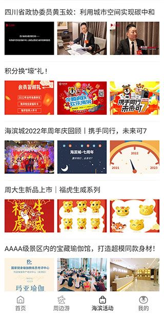 3、【海滨活动】:该页面主要汇集的是海滨城的一些庆典、活动和资讯,甚至还包括积分活动公告。