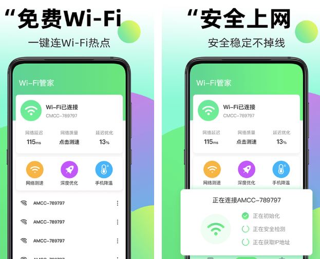 WiFi伴侣全能钥匙,打开即可扫描到周边安全wifi热点,点击连接即可放心上网。