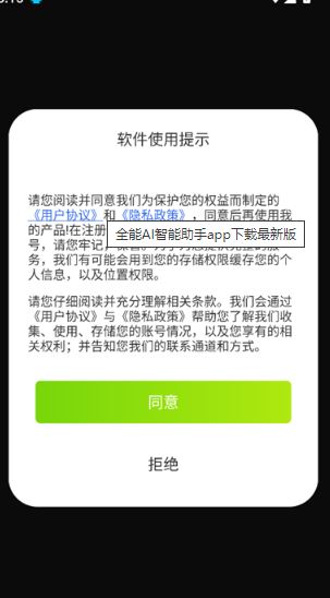 1、首先下载全能AI智能助手,同意隐私协议