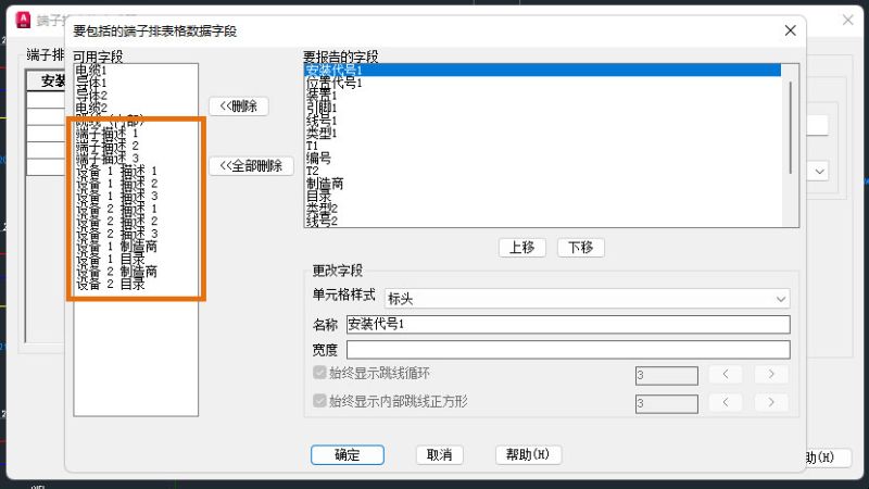 通过使用端子排编辑器或端子表格生成器添加更多字段,可以展开表格式端子排中的数据。