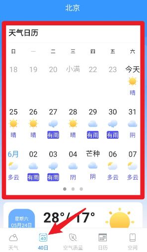 3、点击底部“40日”可查看未来40天的天气日历预测信息。