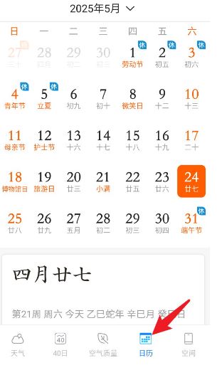 5、点击“日历”可查农历节气、节假日及黄历等日程内容。