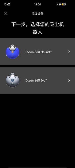 2、选择您的戴森设备,可选吸尘机器人、空气处理、灯具;