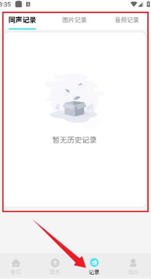 5、然后在【记录】中可以查看到自己的同声记录,图片转换记录,以及音频转换记录等数据。