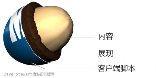 从你的内容花生开始,将其标记为富含语义的(X)HTML. 接着给内容裹上一层富含奶油的CSS. 最后,添加JavaScript作为糖果硬壳,这就做成了一颗可口无比的美味(并使得它不会在你手里融化)。